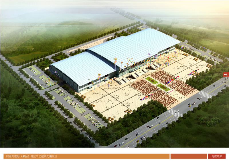 阿克苏国际(果品)博览中心位于阿克苏市三角地附近,紧临314国道和市区通向阿克苏飞机场的道路,总面积5622.07平方米(约128.43亩),项目总投资34274.98 万元,于2012年8开工建设。该项目建成后,将有力促进地区特色林果业及其它产业的发展,为把阿克苏打造成为全疆乃至全国特色林果集散中心奠定了基础。