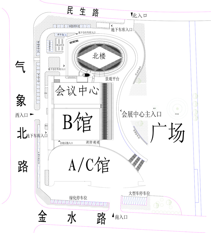 会展中心展览面积约13494平方米,其中一期工程展览面积约2624平方米,可设标准展位130个;二期工程一楼展厅面积约5435平方米,可设标准展位270个,二楼展厅建筑面积约5435平方米,可设标准展位200个。共计标准展位600个。同时,可在广场空地临时搭建展位补充展会需要。