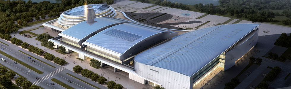 宁海国际会展中心是集会展、展销、商贸、办公、会议培训、餐饮娱乐、体育健身于一体的现代化、多功能、综合性的会展中心。该项目占地78.5亩,规划总建筑面积约73604平方米,分为两期工程建设。一期工程分为地上五层和地下一层,其中地上建筑面积39480平方米,地下面积15898平方米;二期工程分为两层,建筑面积18226平方米。广场面积约3万平方米,广场绿化面积8474平方米。