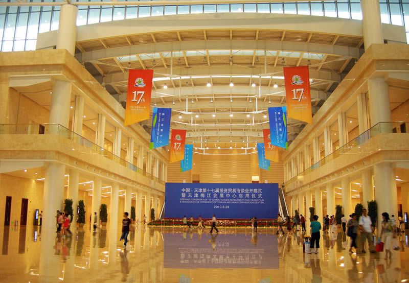 天津梅江会展中心是天津市规模最大的会展中心,是一座集展览、会议、商务、餐饮等多功能于一体的现代智能化展馆,设施完善,具有国际标准,是举办大型展览、高端会议的理想场所,还能够建设满足大型宴会、集会、庆典活动等各类需求。会展中心二期已于2010年10月开工建设,2012年9月竣工。届时,梅江会展中心的展览面积将近15万平方米。