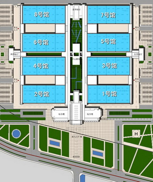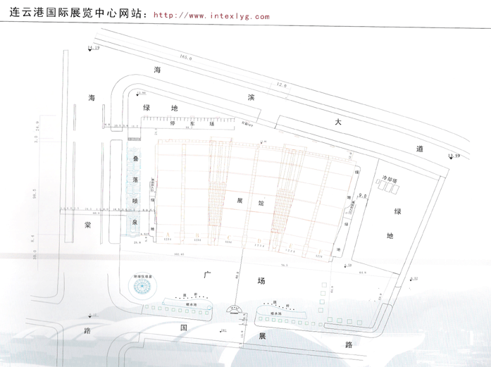 连云港国际展览中心一期工程于2001底年竣工,建筑面积2.8万平方米,总投资1.7亿,设850个国际标准展位,办公、洽谈、小型会议室共计30余间,其主体结构为大跨度空间钢管桁架结构,造型优美、起伏有致。