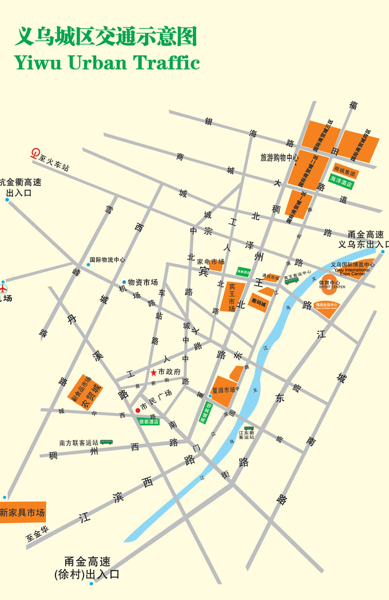 会展中心西临宾王大道,东临江东东路,北临体育中心,与北侧的四万人大型体育场遥相呼应,周边星级酒店林立,离火车站2公里,距义乌机场仅20分钟,交通便捷。