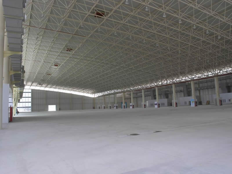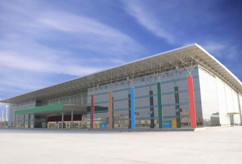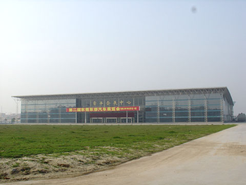 展览馆展厅大堂采用国际先进的球形网架结构及玻璃幕墙,大跨度,无柱空间,展馆净空最高为15米,最低为8米,可容纳国际标准展位(3×3m)500多个。展馆前方建有总占地面积为35000平方米的绿化广场,同时设有近10000平方米的露天展场,设有200个车位的停车场。