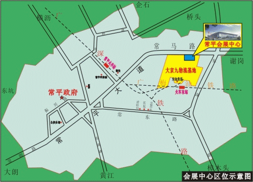 常平会展中心集展览、会议、娱乐、休闲、购物为一体,并配有餐饮、广告、贸易、仓储等服务的现代化展览馆,位于东莞市常平镇常马公路侧,风景秀丽,交通方便,紧靠东莞站和东莞东站,距深圳机场45公里。