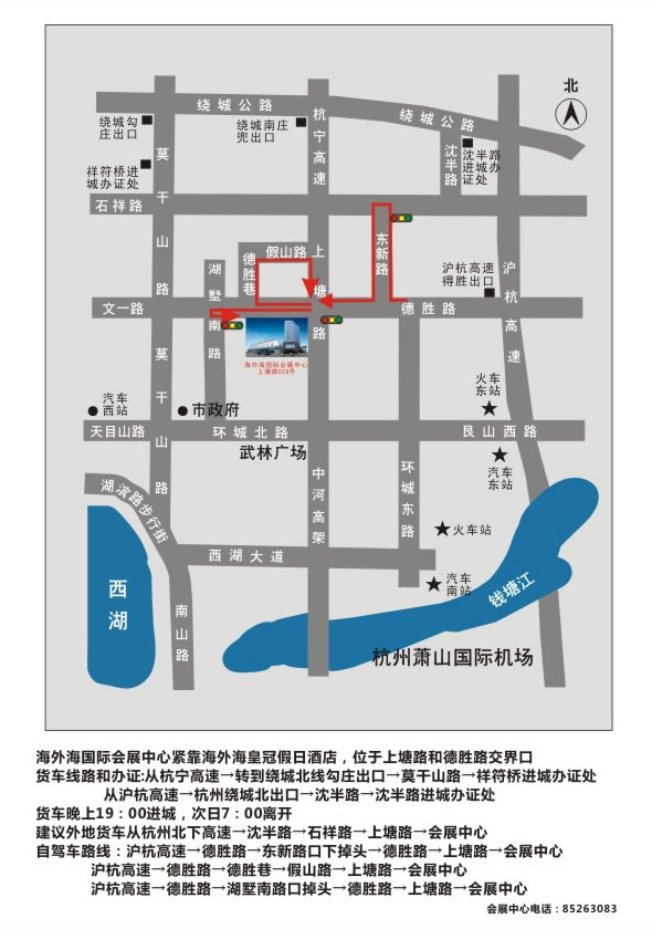 作为2009年新建成的现代化会议展览中心,杭州海外海国际会议展览中心位于杭州市拱墅区,上塘路和德胜路交叉口,距离杭州市中心武林门仅10分钟车程。
