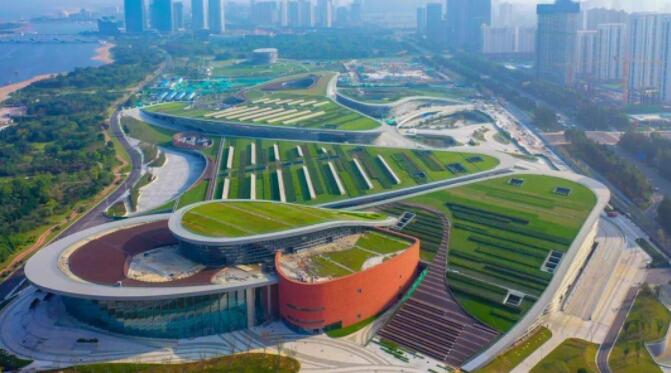 场馆独特的设计理念使项目完美融入日照海岸风景带,整个建筑像岸边涌动的几朵浪花,“浪花”顶部坡度可达30度,这几朵“浪花”便是文化展厅、大剧院、未来馆等建筑。项目外墙材料中,镜面铝复合板和高反玻璃的使用量为目前国内最大,可将周围景色映射在镜面上,使建筑与环境融为一体。项目屋面采用屋顶花园的设计...