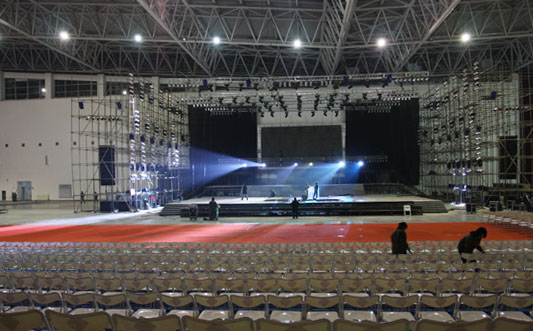 银川国际会展中心 是我区成立五十周年大庆重要建设项目之一,位于银川市城市核心区人民广场西侧。其作为会展中心不仅环境优美,交通便利,设施完善,更是一座集展览、会议、商贸洽谈、信息交流、旅游、餐饮娱乐等多功能于一体的现代智能化展馆。