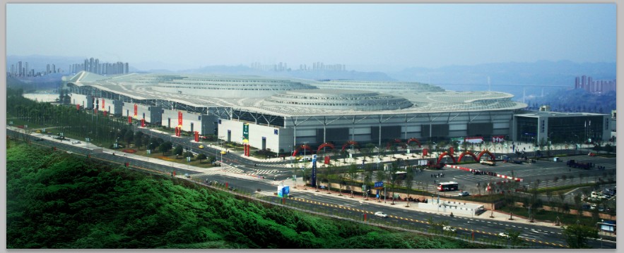 乘坐重庆公交572路、635路区间、677路、965路、博览中心专线(逢展会期间开行),在博览中心广场站下车。